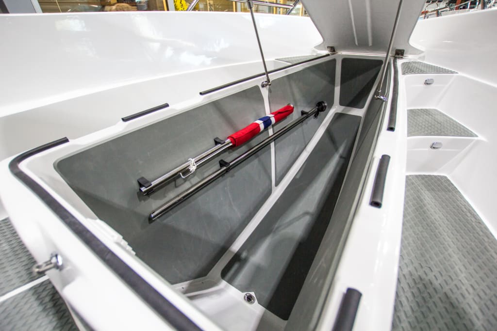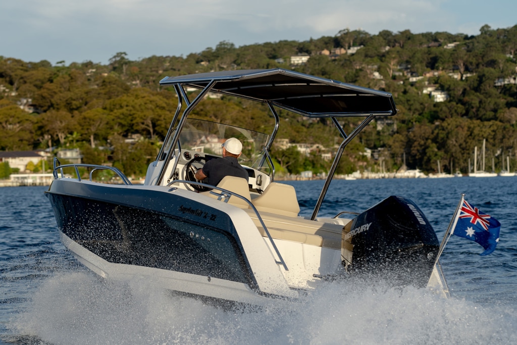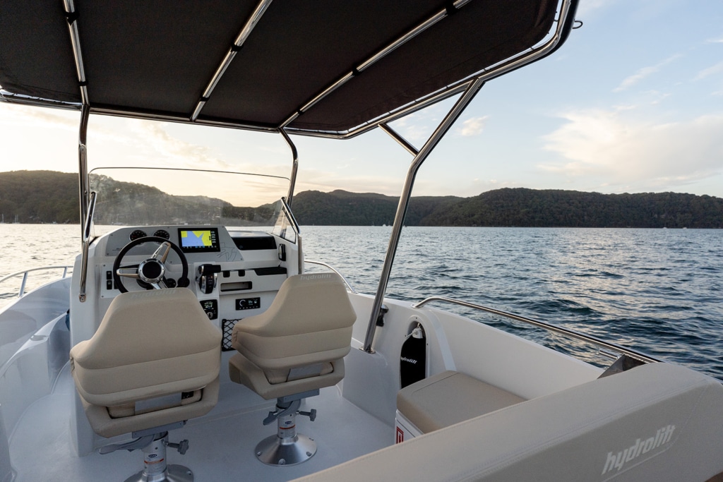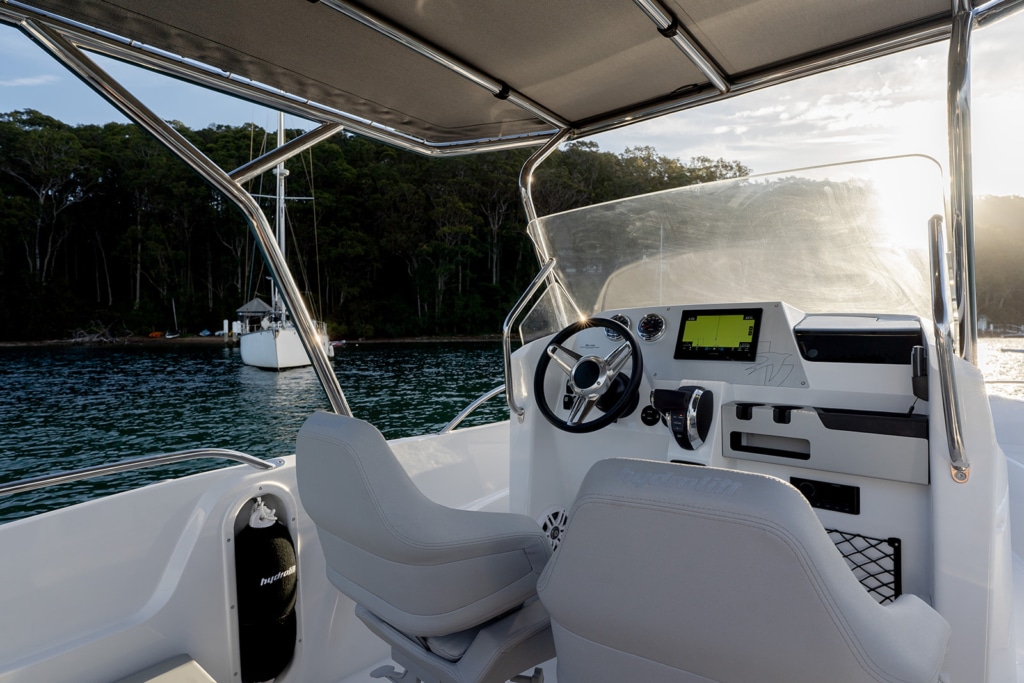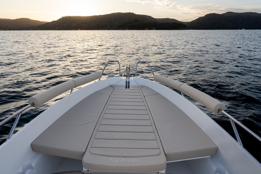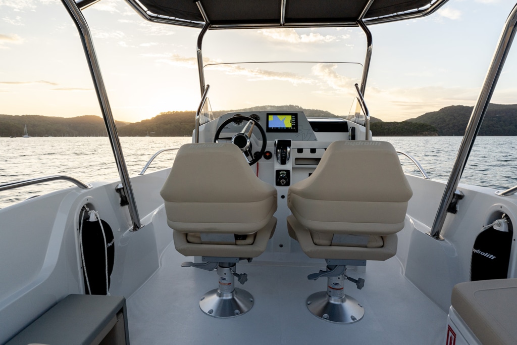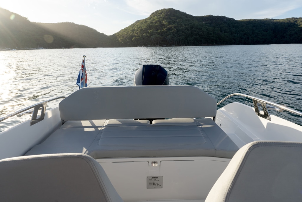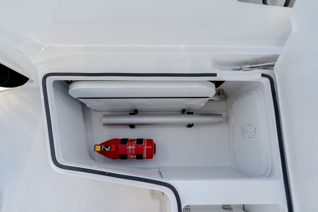 In the bow section, the spacious and comfortable bench seating doubles as storage room, or can be configured as a sun lounge for those wanting to spend more time in the sun. The stylish pilot console houses a large navigation panel that lays the foundation for a comfortable and safe trip on the water.